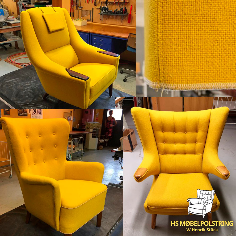 HS Møbelpolstring kommer ofte på messer, hvor vi henter ny inspiration og finder nye stoffer og andet materiale. Vi bruger altid originalt materiale. Både stof og skumgummi, så det passer til møblet. Vi arbejder meget omhyggeligt med tingene og sørger for hele tiden at være på toppen med nye maskiner.